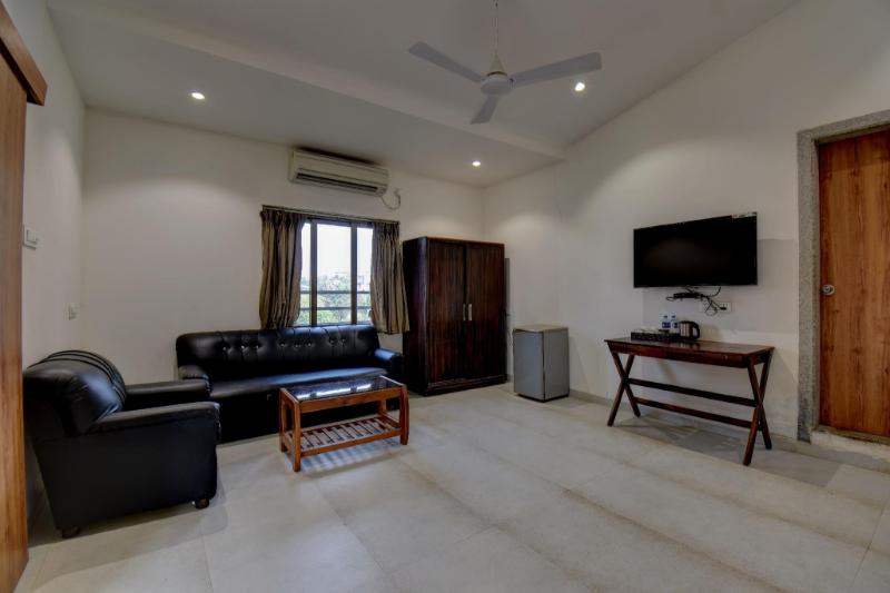 The Deluxe Room is air-conditioned, comfortable, and ideal for couples or small families. The layout keeps things simple and functional, offering a cozy space to unwind after beach days while still giving the convenience expected from a classic Goan resort stay.